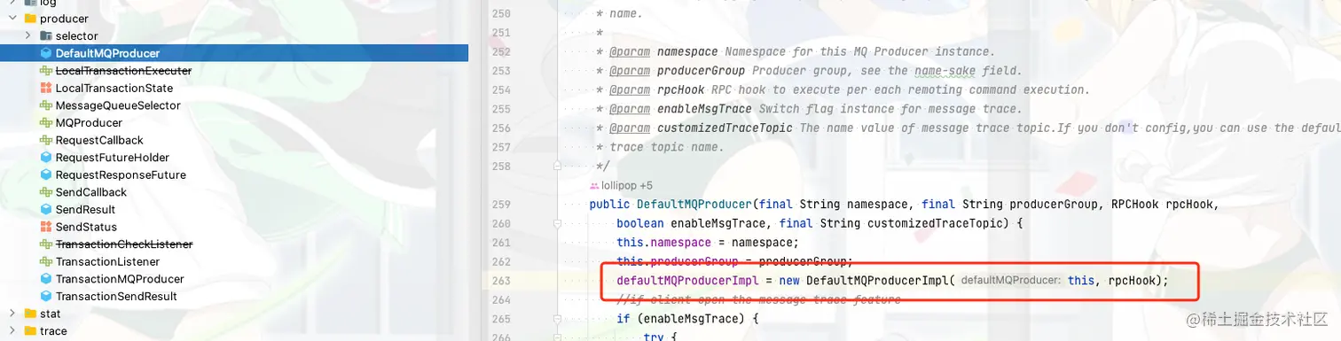 注意这里的DefaultMQProducer是继承了DefaultMQProducer
