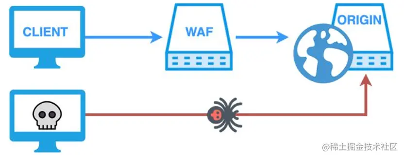 传统应用安全的解决方案,大部分安全从业者都会想到WAF(Web Application Firewall, 应用程序防火墙),WAF是一种专门用于分析HTTP/HTTPS流量的专用防火墙,可以深入到每一次HTTP/HTTPS请求和详情中去检查是否包含敏感字段,然后放行正常行为,拦截恶意行为,就像自来水过滤器一样,把“杂质”从庞大的流量中剔除出去,这样应用程序就只会响应正常的请求,从而达到保护应用程序的目的。