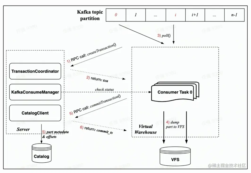 (事务中 Commit 的数据包括:dump 完成的 part 元数据以及对应 Kafka offset)