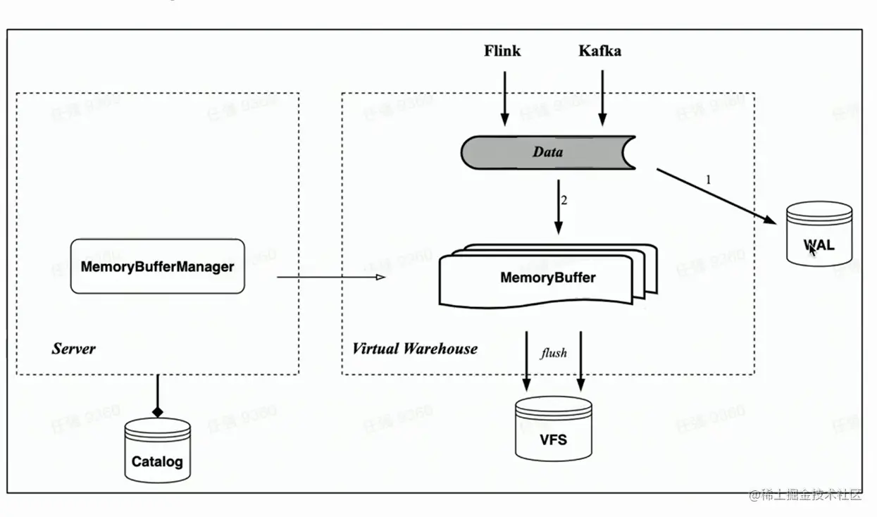 与 Memory Table 不同的是,Memory Buffer 不再绑定到 Kafka 的消费任务上,而是实现为存储表的一层缓存。这样 Memory Buffer 就更具有通用性,不仅是 Kafka 导入可以使用,像 Flink 小批量导入的时候也可以使用。