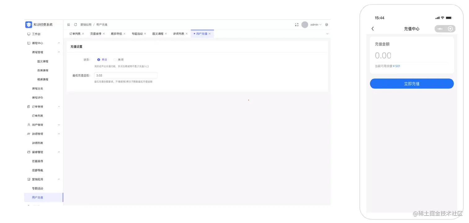 提供充值入口,可自由开启或关闭,余额支付更健康