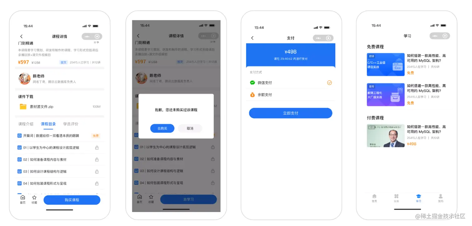 用户免费试看/试听部分课程后可自主选择是否付费购买