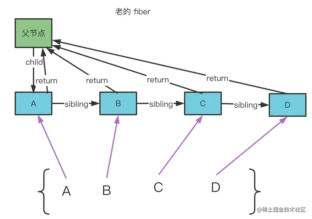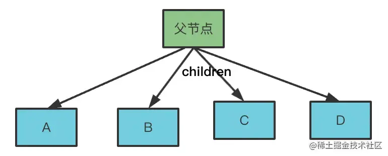 比如父节点下有 A、B、C、D 四个子节点,那渲染出的 vdom 就是这样的: