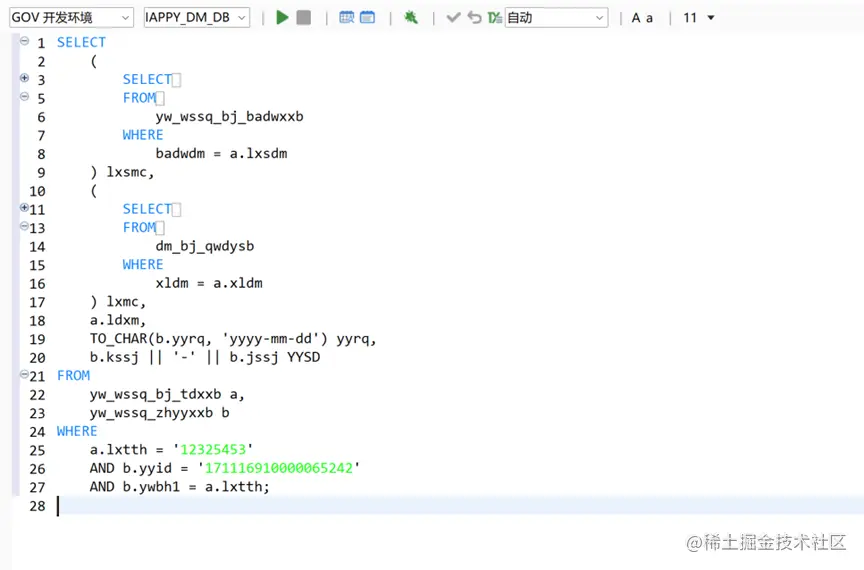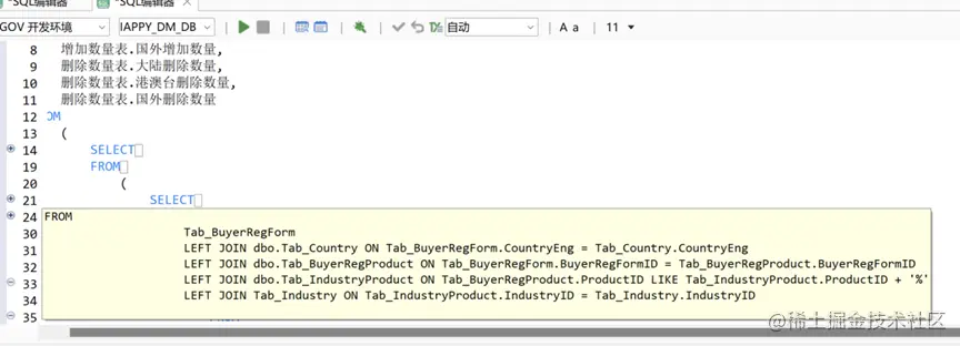 通过代码折叠,极大提升了编辑器使用体验。个人非常喜欢这个功能带来的SQL语句阅读清晰结构、关注重点语句部分。