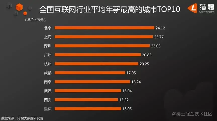 看到眼前的互联网平均年薪中位数,不难看出还是大城市的年薪更高。