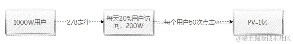 - 1000W用户,每天来访问这个网站的用户占到20%,也就是每天有200W用户来访问。