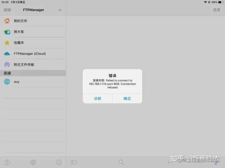 请在确保2台设备在同一局域网,并且ipad安装有FTP传输软件。