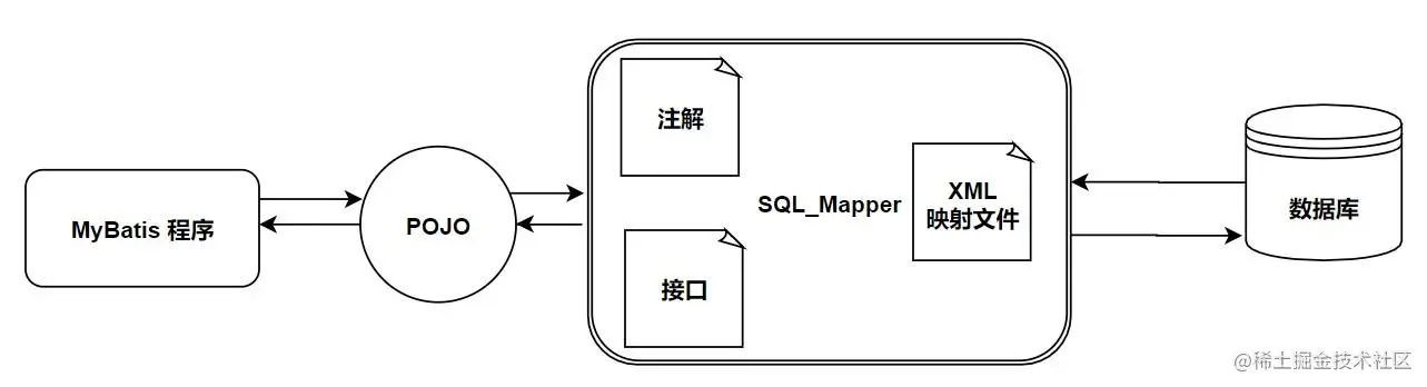 SQL Mapper:是有一个 Java 接口和 XML 文件(或注解)构成的,需要给出对应的 SQL 和映射关系,负责发送 SQL 去执行,并返回结果。