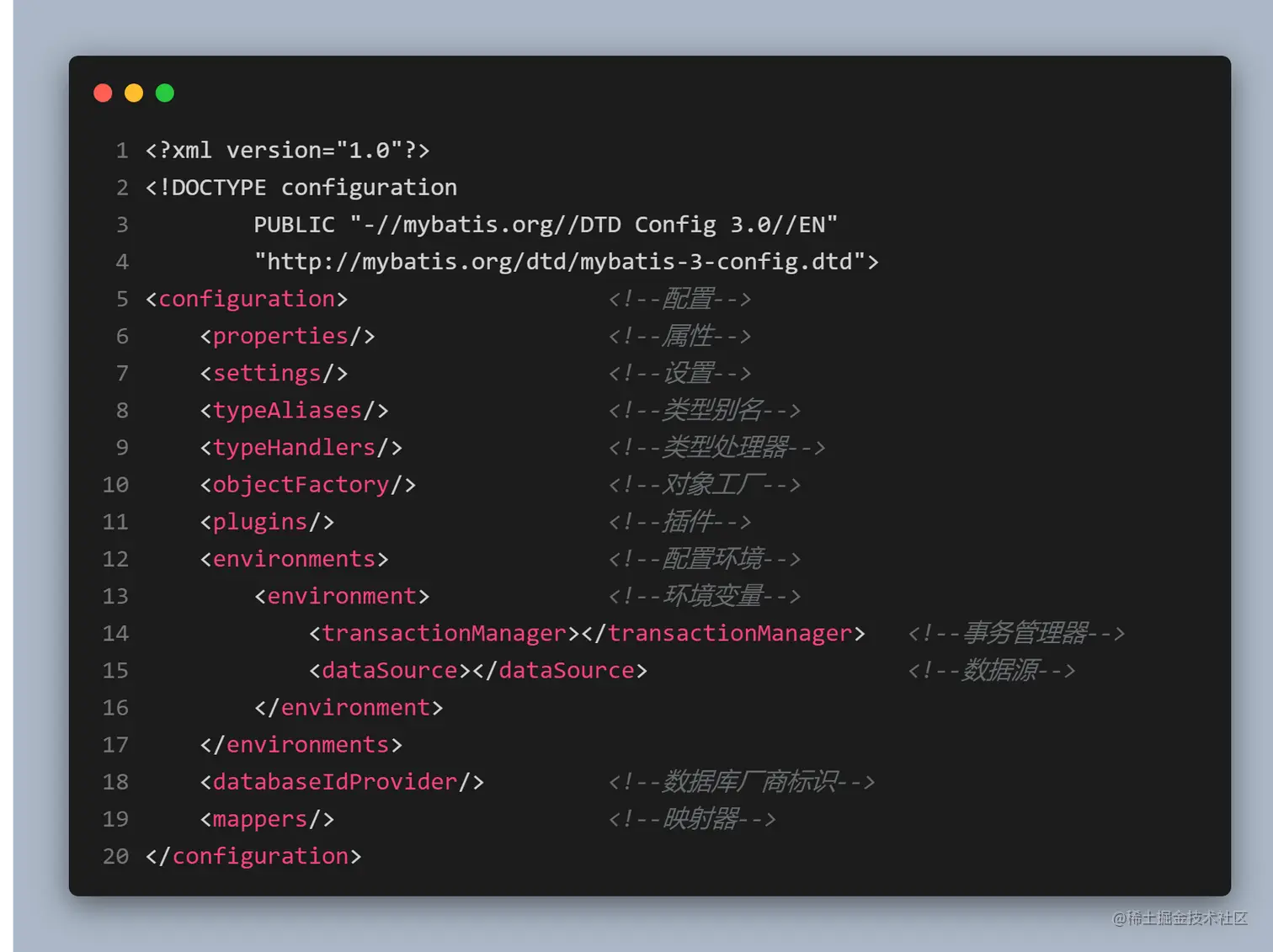 上面那些标签就是 MyBatis 的全部配置元素