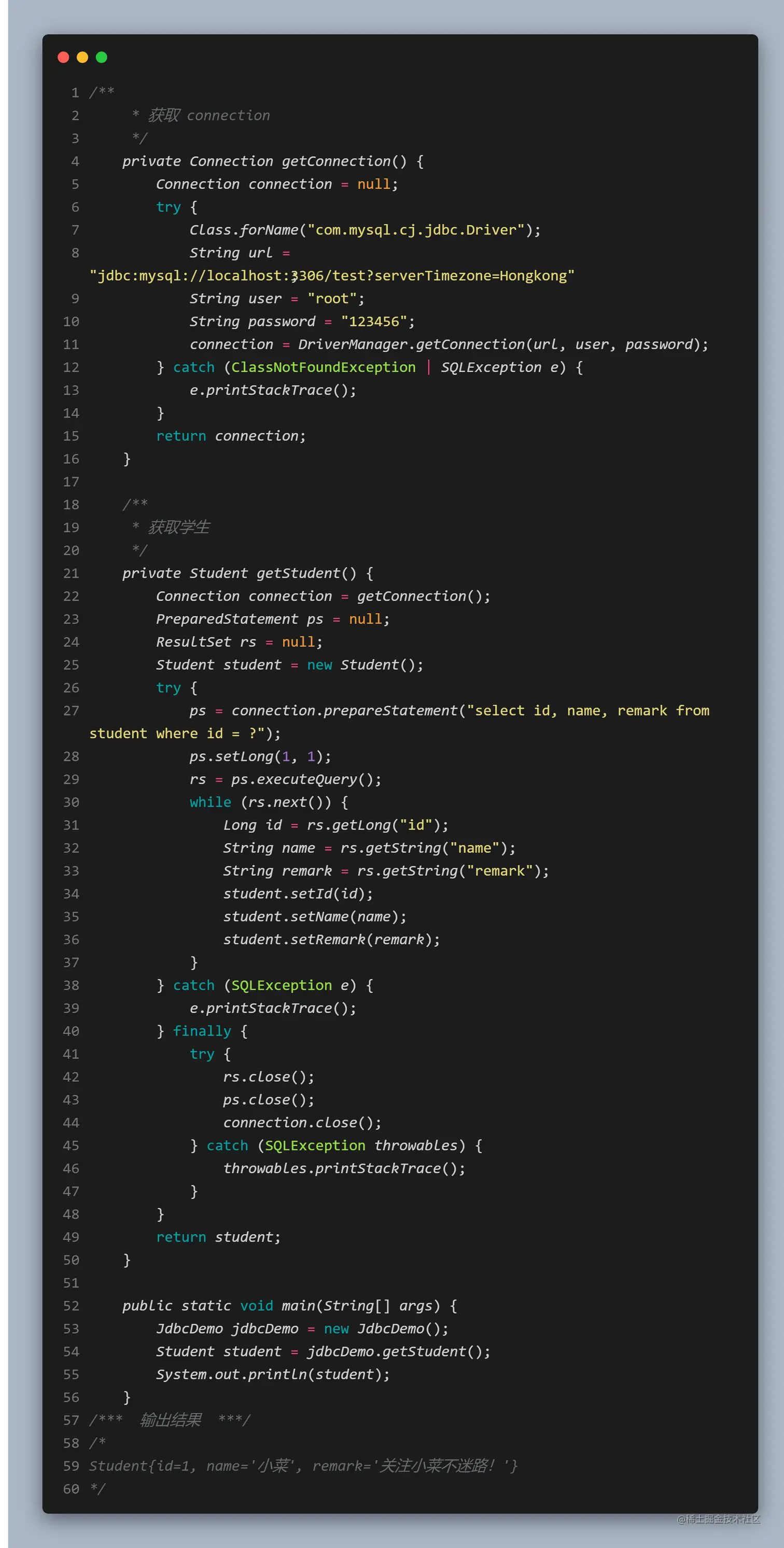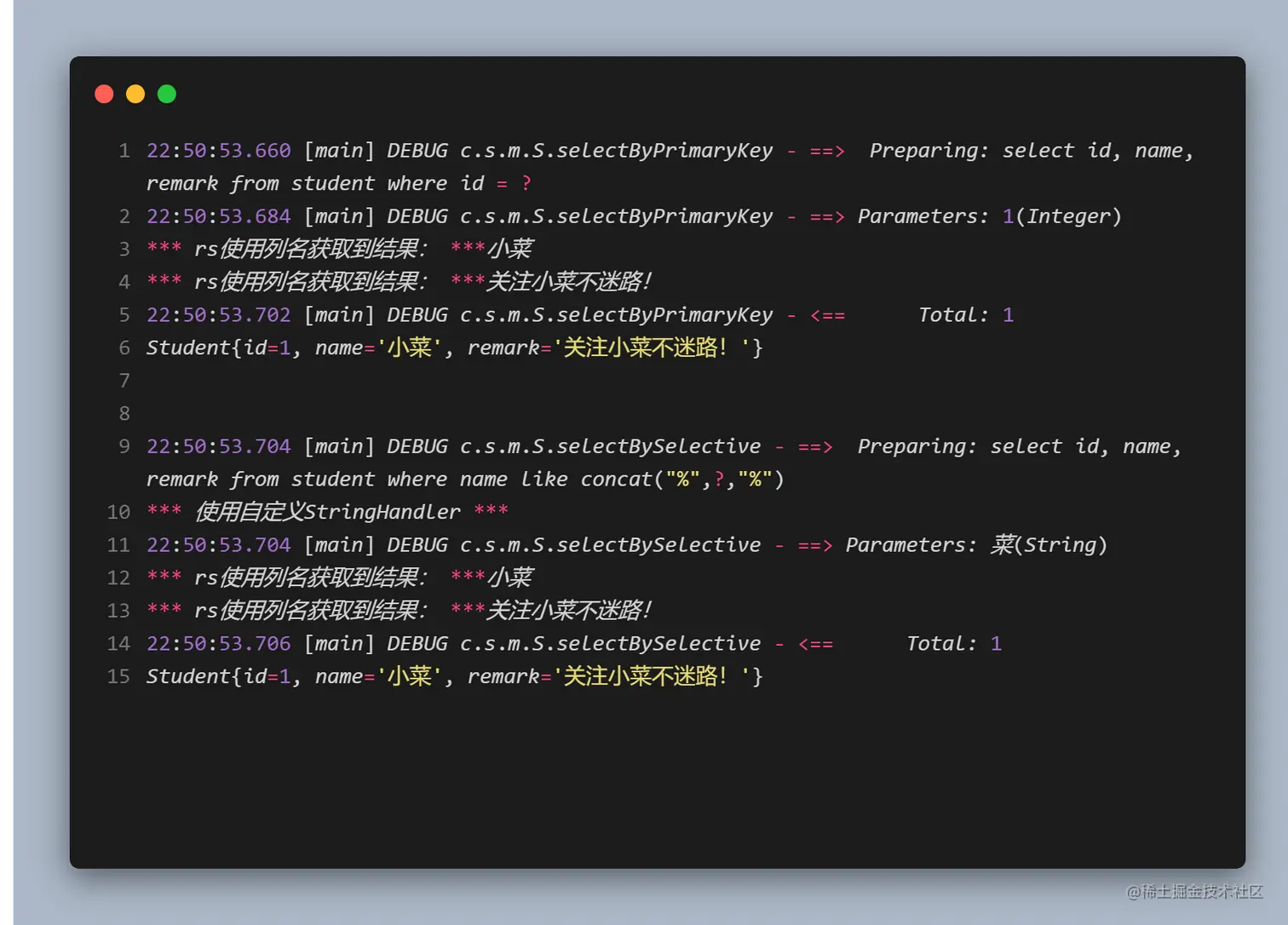 值得开心的是我们成功的获取到了结果,而且代码量也不像JDBC那么繁多,给我们带来的好处也是显而易见的: