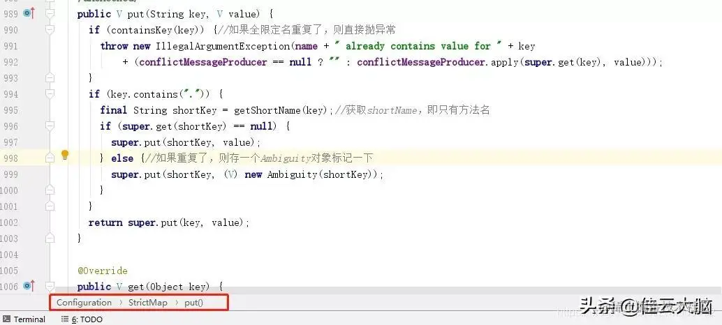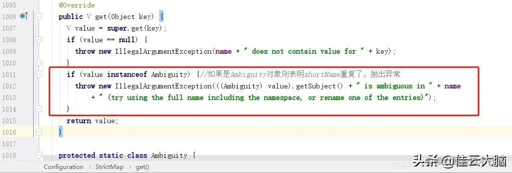 这里的异常其实就是StrickMap的get方法抛出来的: