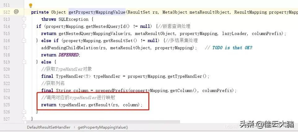 的处理,所以逻辑分支是有很多,但是不管怎么处理,最后的核心还是上面的一套流程,最终还是会调用typeHandler来获取查询到的结果。
