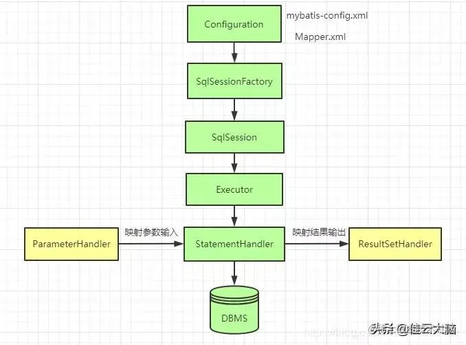 上面介绍了代码的流转,可能绕来绕去有点晕,所以我们来画一个主要的对象之间流程图来更加清晰的展示一下MyBatis主要工作流程: