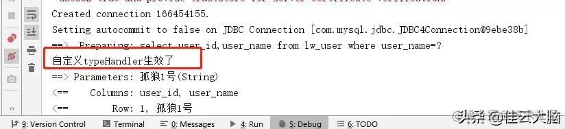 然后执行,可以看到,自定义的typeHandler生效了: