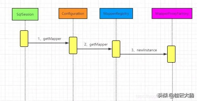 第二步是通过SqlSession对象是获取一个Mapper接口,这个流程还是相对简单的,下面就是我们调用session.getMapper方法之后的运行时序图: