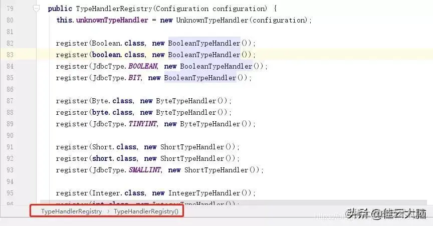 看到这些子类如果大家之前阅读过我前面讲的MyBatis参数配置,应该就很明显可以知道,这些子类就是系统默认提供的一些typeHandler。而这些默认的typeHandler会默认被注册并和Java对象进行绑定: