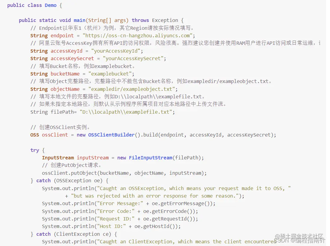 OSSClient ossClient = new OSSClient(endpoint, accessKeyId, accessKeySecret);
