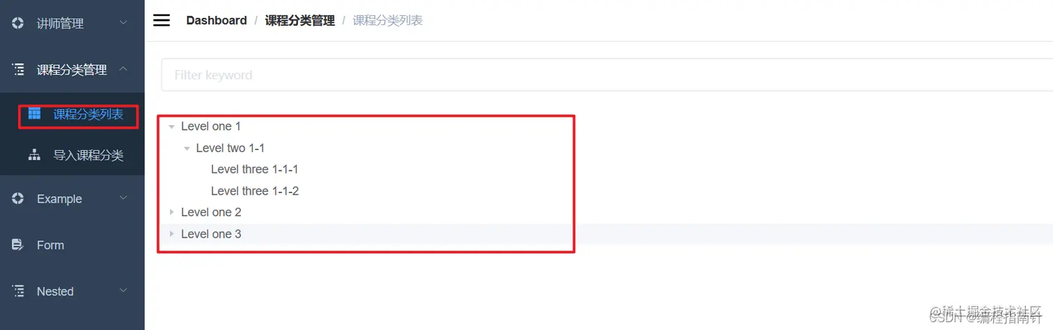 直接把tree/index.vue文件中的代码复制到subject/list.vue文件中,运行看效果。