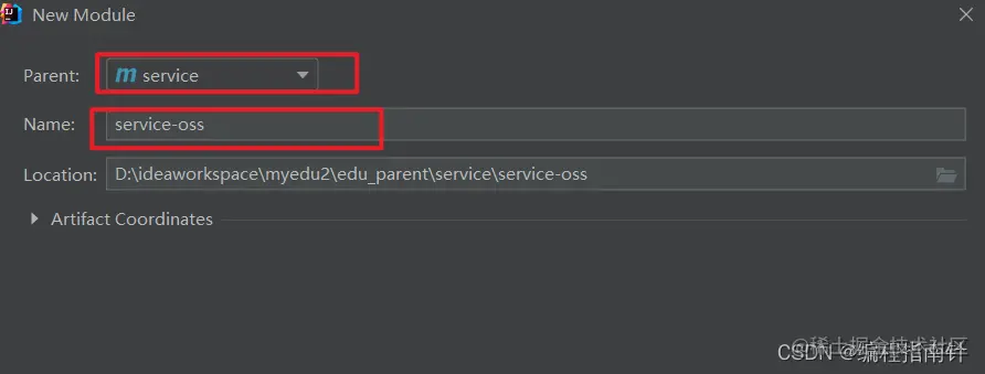 service-oss上级模块service已经引入service的公共依赖,所以service-oss模块只需引入阿里云oss相关依赖即可,