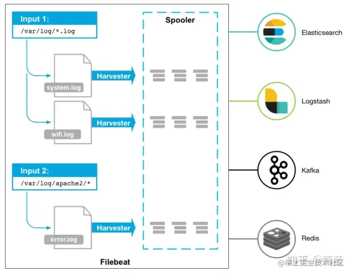 Filebeat 是一个高性能的日志采集框架,它主要是以 agent 模式工作,特点是高性能。用以解决 logstash 的性能问题,一般我们都会把数据先借助于 filebeat 采集,并存到 redis 里,再由 logstash 对数据进行 编辑变换,再输出到 es 中。