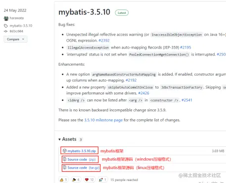 - 将框架以及框架的源码都下载下来,下载框架后解压,打开mybatis目录