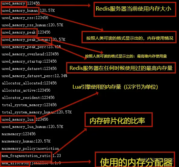 执行该命令后,Redis服务器就会返回内存使用情况的详细信息。例如: