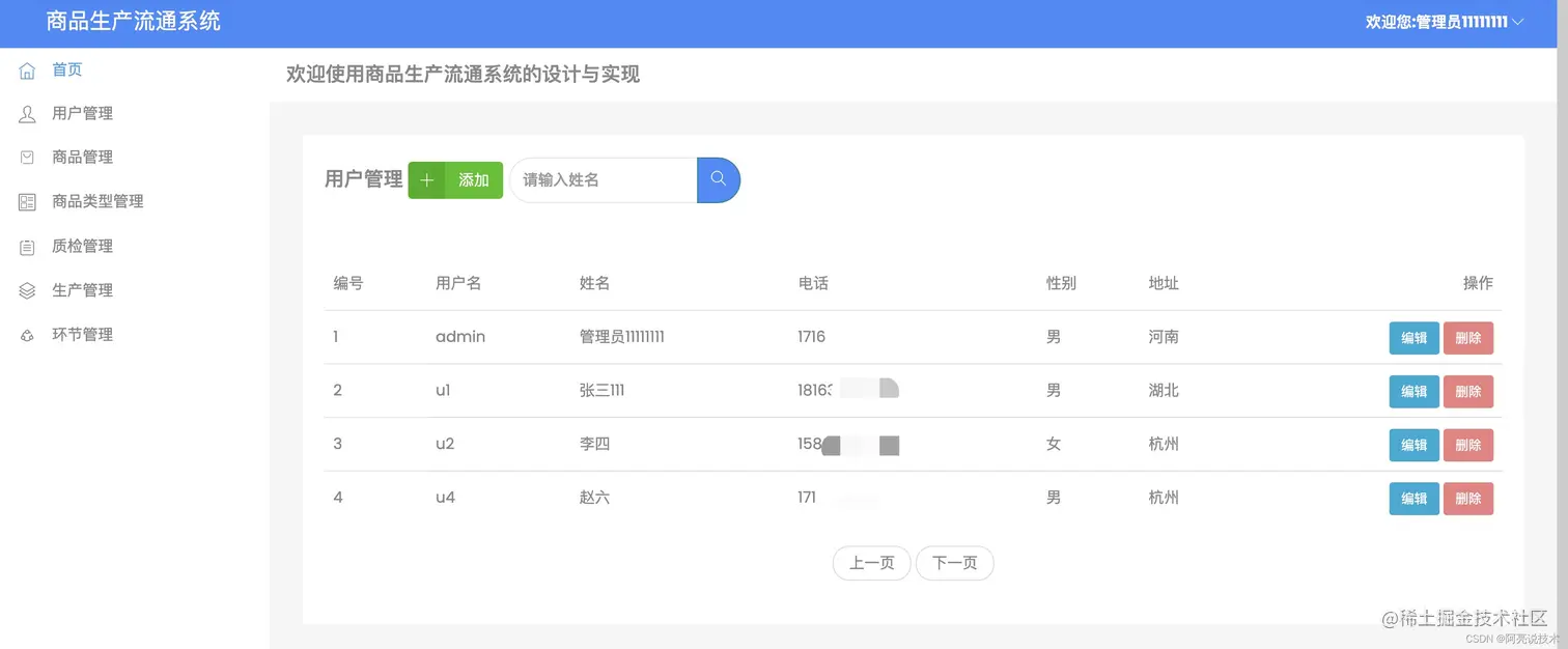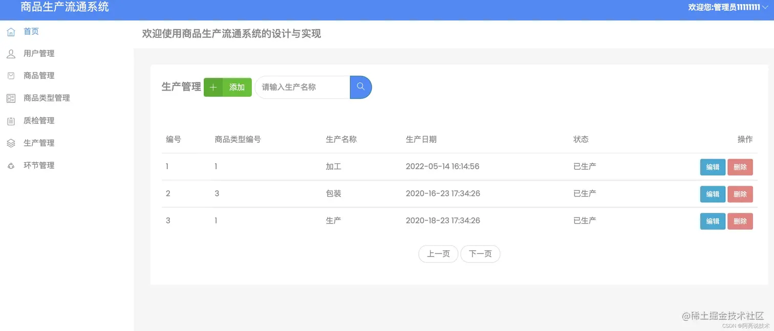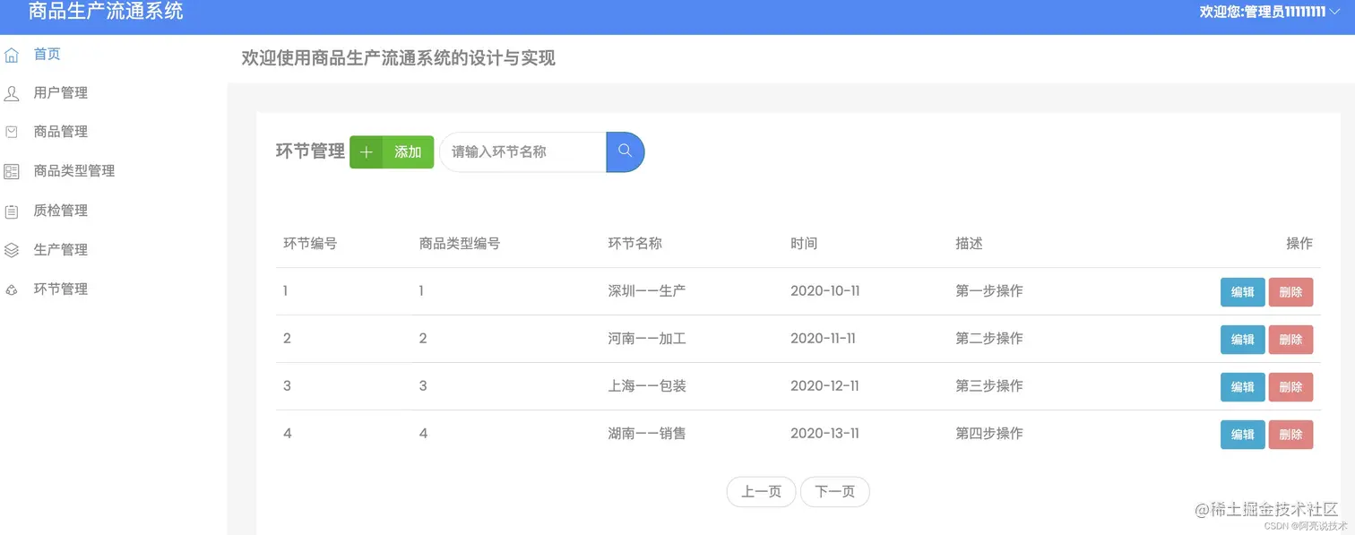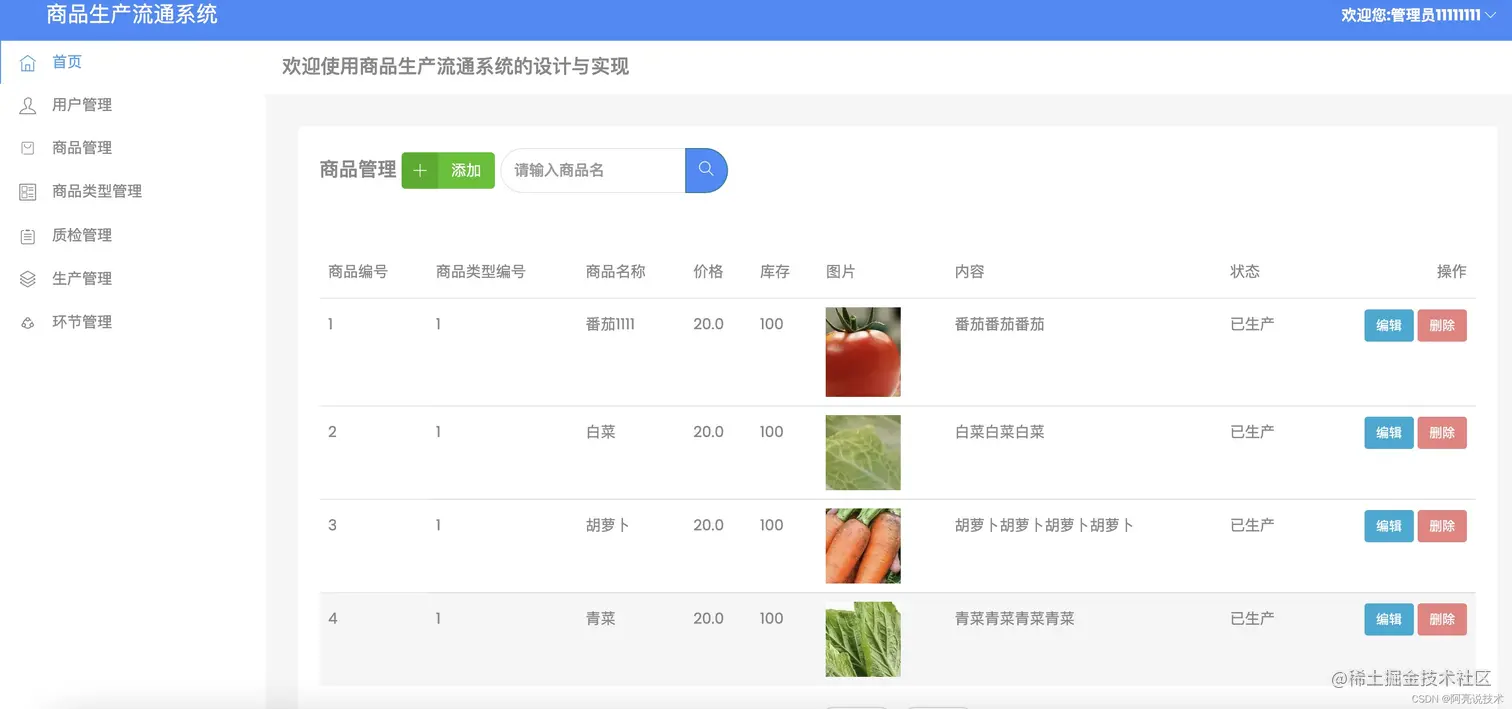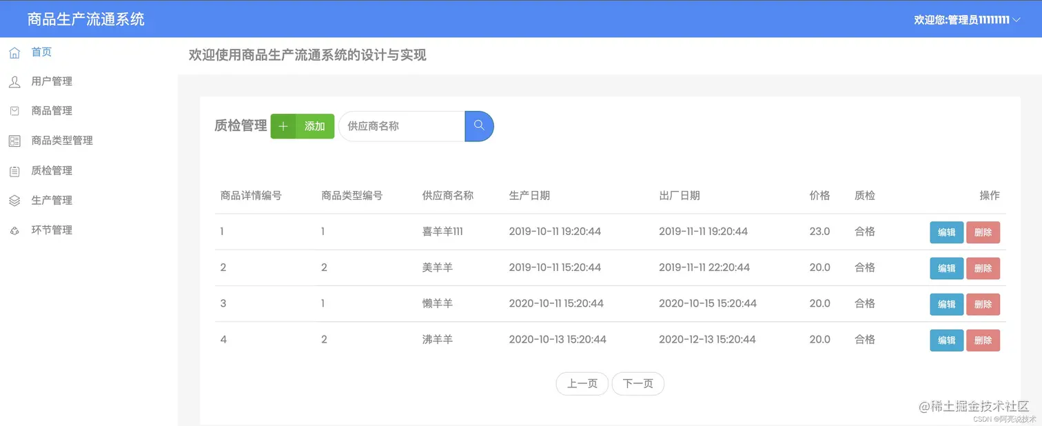 SSM jsp商品生产流通系统 beyond阿亮 2023-03-07 44 阅读1分钟 SSM jsp商品生产流通系统 首页登录注册 商品列表 商品详情 扫码查看 生产环节 环节步骤 人个资料 后台管理 用户管理 商品管理 商品类型管理 质检管理 生产管理 环节管理 人个中心 使用技术: SSM(Spring + SpringMVC + Mybaits) + Mysql + jsp(前端) 基于二维码标识商品生产流通全环节追溯系统的设计与实现