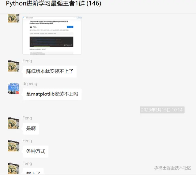 他遇到的问题是新版本的Python中能安装上matplotlib,但是降低版本缺安装不上matplotlib,而他现在就想在低版本上跑这个matplotlib代码,必须要降低版本。