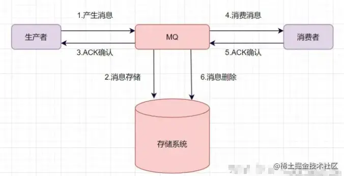 - MQ服务器收到ACK,认为消息消费成功,即在存储中删除消息。