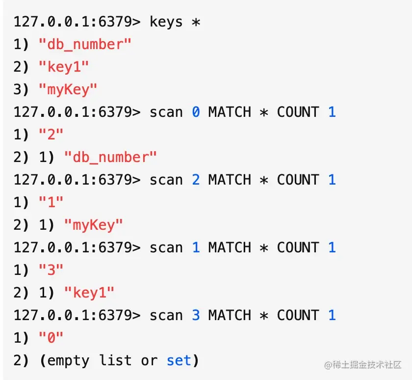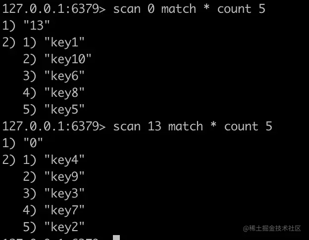 其实不难发现scan命令跟我们在数据库中按条件分页查询是有别的,mysql是根据条件查询出数据,scan命令是按字典槽数依次遍历,从结果中再匹配出符合条件的数据返回给客户端,那么很有可能在多次的迭代扫描时没有符合条件的数据。