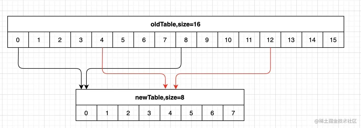 即在找目标桶时总是用当前hashtaba的sizemask(掩码)来计算,v=14即二进制000 1110,当前字典表的掩码从15变成了7即二进制0000 0111,v&m0的值为6,也就是说在新表上还要扫一遍6号桶.但是缩容后旧表6和14号桶的数据都已迁移到了新表的6号桶中,所以这时扫描的结果就出现了重复数据,重复的部分为上次未缩容前已扫描过的6号桶的数据。