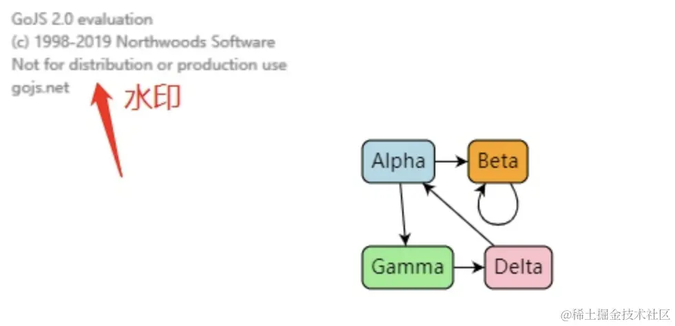 **** (一)、首先直接使用go.js,画布中是有水印的
