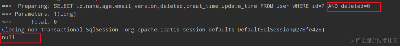 再执行查询这条信息,没有查到,查询的时候会自动过滤被逻辑删除的字段
