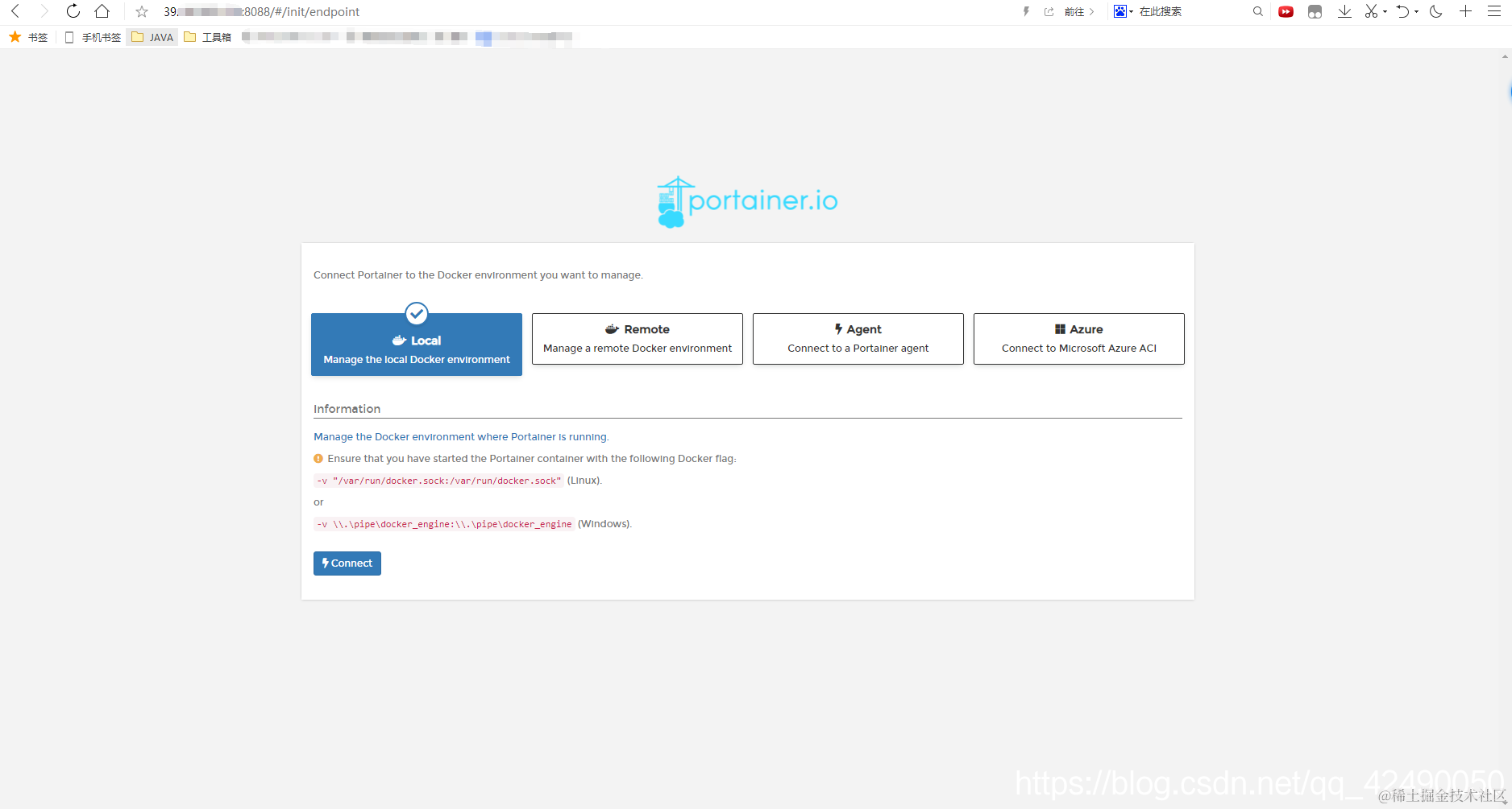 单机版这里选择local即可,选择完毕,点击Connect即可连接到本地docker: