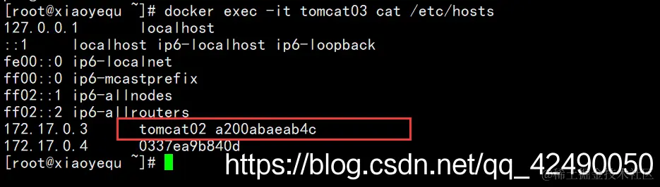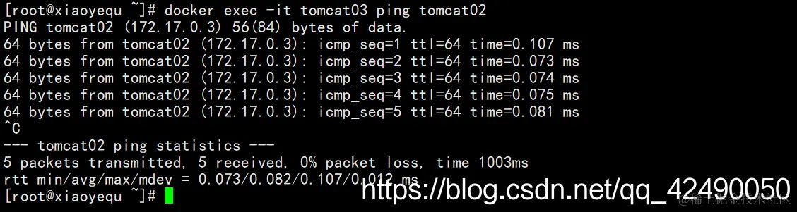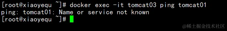我们使用tomcat02,直接通过容器名ping tomcat01,不使用ip
