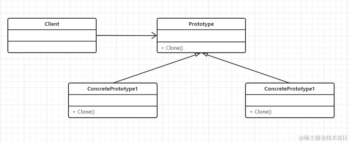 - ConcretePrototype:具体的原型类, 实现一个克隆自己的操作