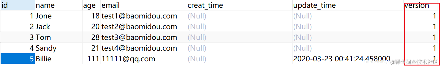 1.给数据库中添加version字段(默认值为 1)