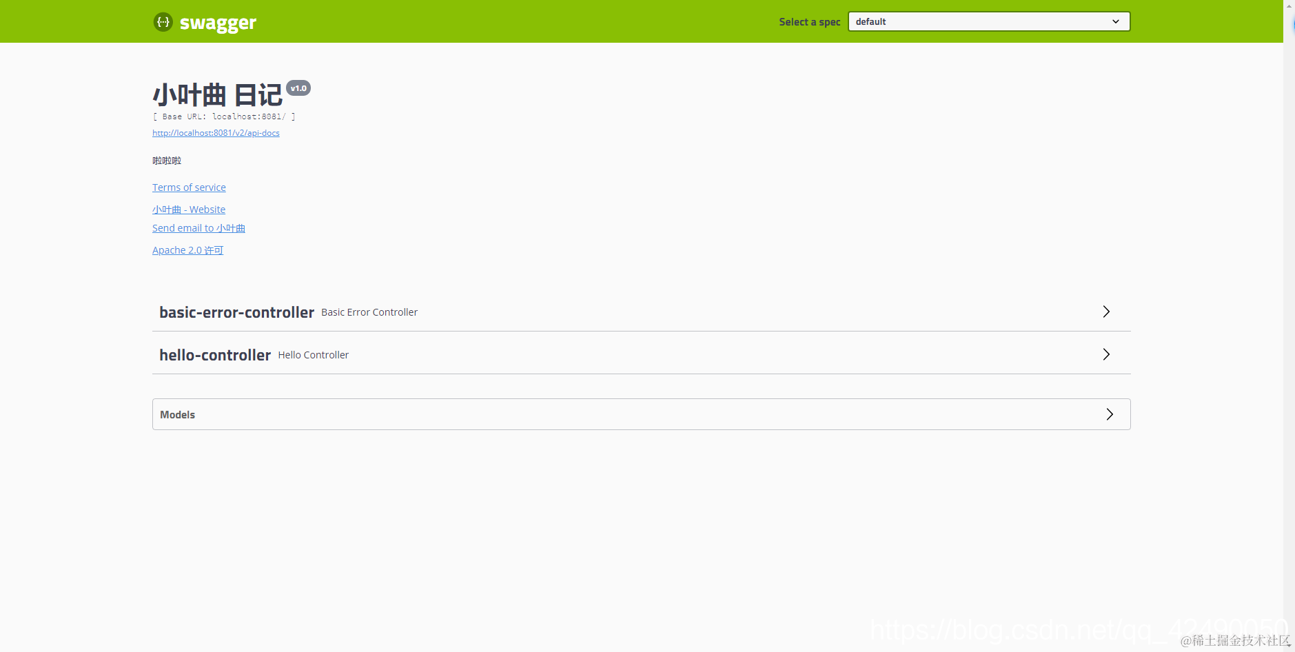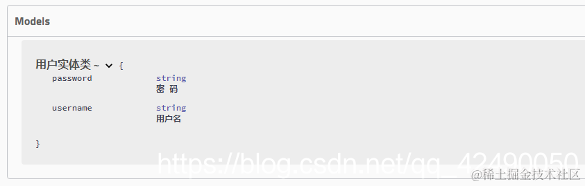 注:并不是因为@ApiModel这个注解让实体显示在这里了,而是只要出现在接口方法的返回值上的实体都会显示在这里,而@ApiModel和@ApiModelProperty这两个注解只是为实体添加注释的。