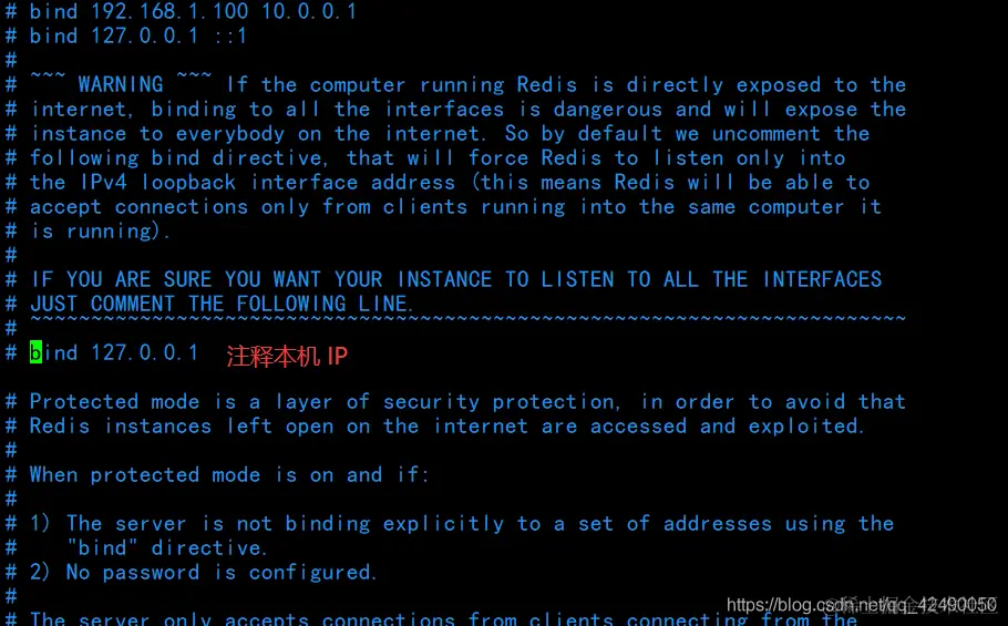 需要修改 redis.conf 配置文件( /usr/local/bin/jiaconfig ),注释掉 bind 127.0.0.1