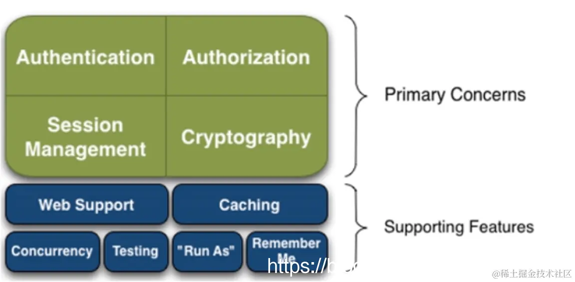 - Cryptography: 密码模块,Shiro 提高了一些常见的加密组件用于密码加密,解密等