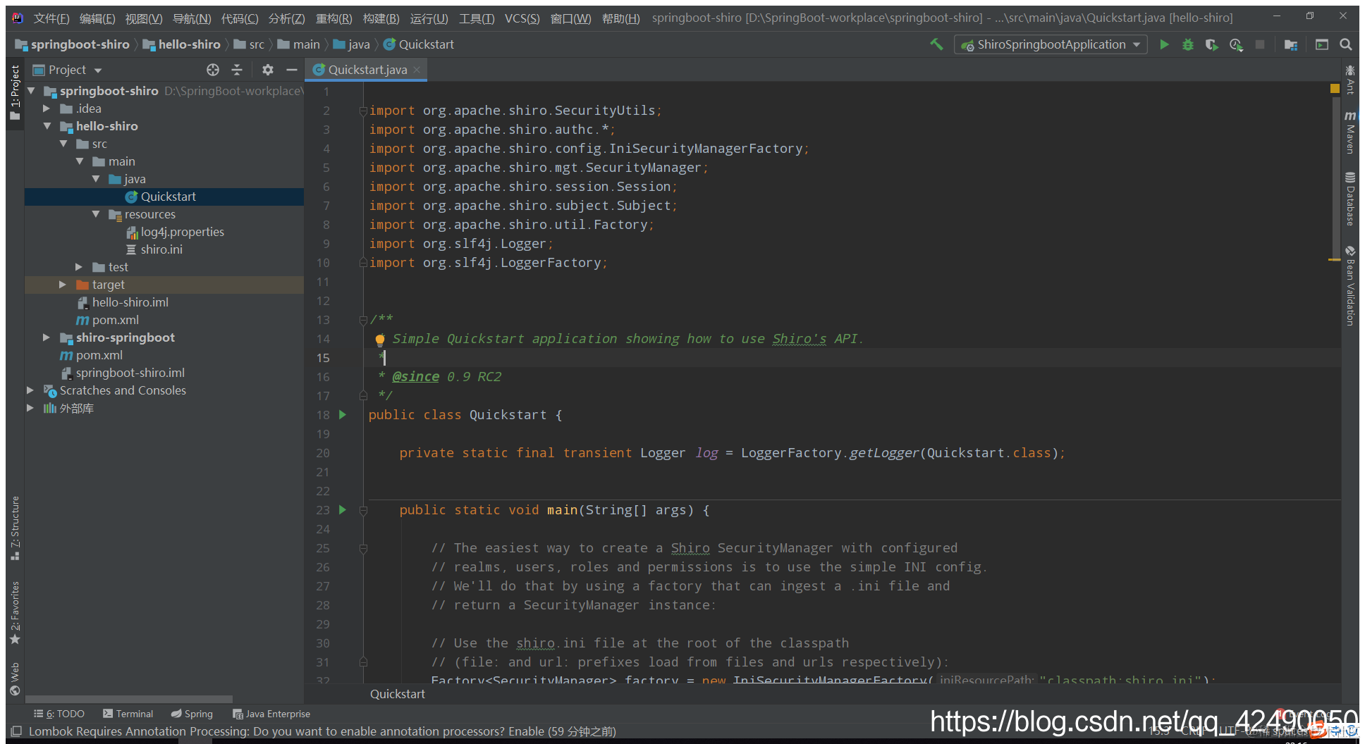 查看官网文档:shiro.apache.org/tutorial.ht…