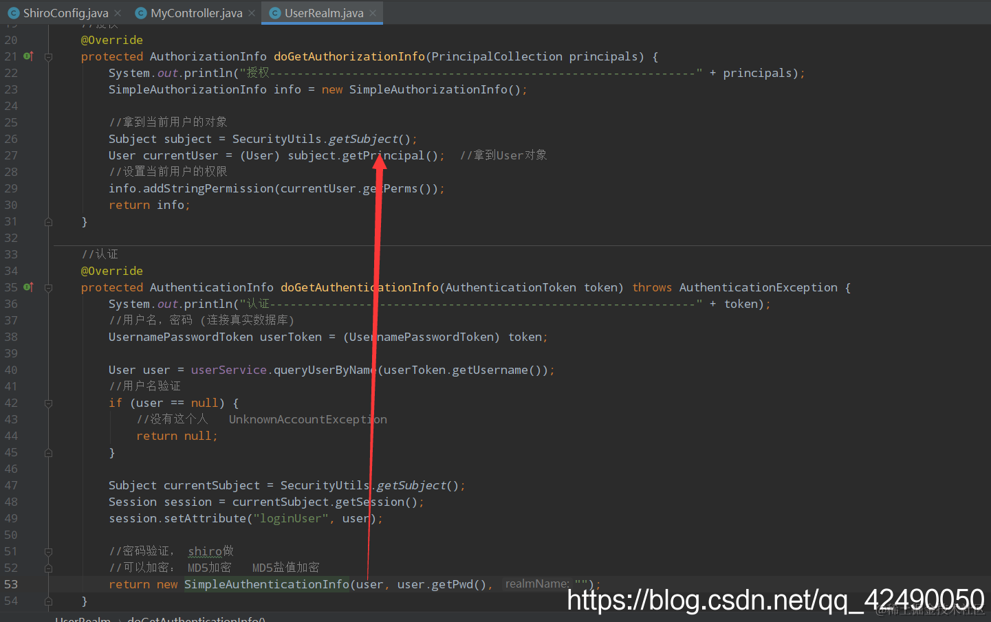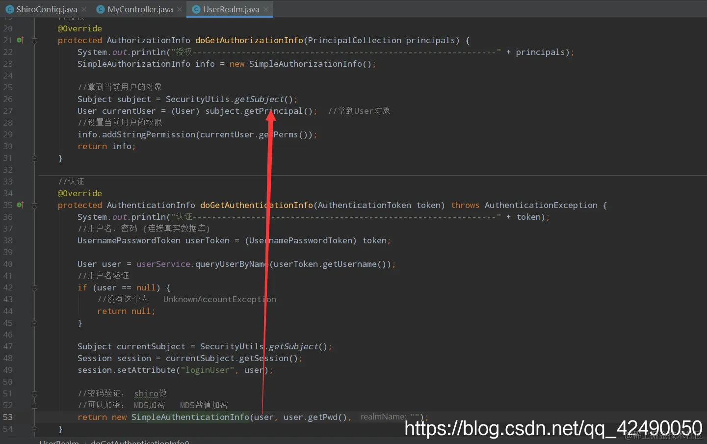 MyUser user = userService.queryUserByName(userToken.getUsername());