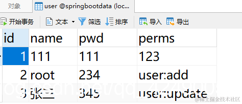 问题,我们现在完全是硬编码,无论是谁登录上来,都可以实现授权通过,但是真实的业务情况应该是,每个用户拥有自己的一些权限,从而进行操作,所以说权限应该在用户的数据库中,正常的情况下,应该数据库中是由一个权限表的,我们需要联表查询,但是这里为了大家操作理解方便一些,我们直接在数据库表中增加一个字段来进行操作!