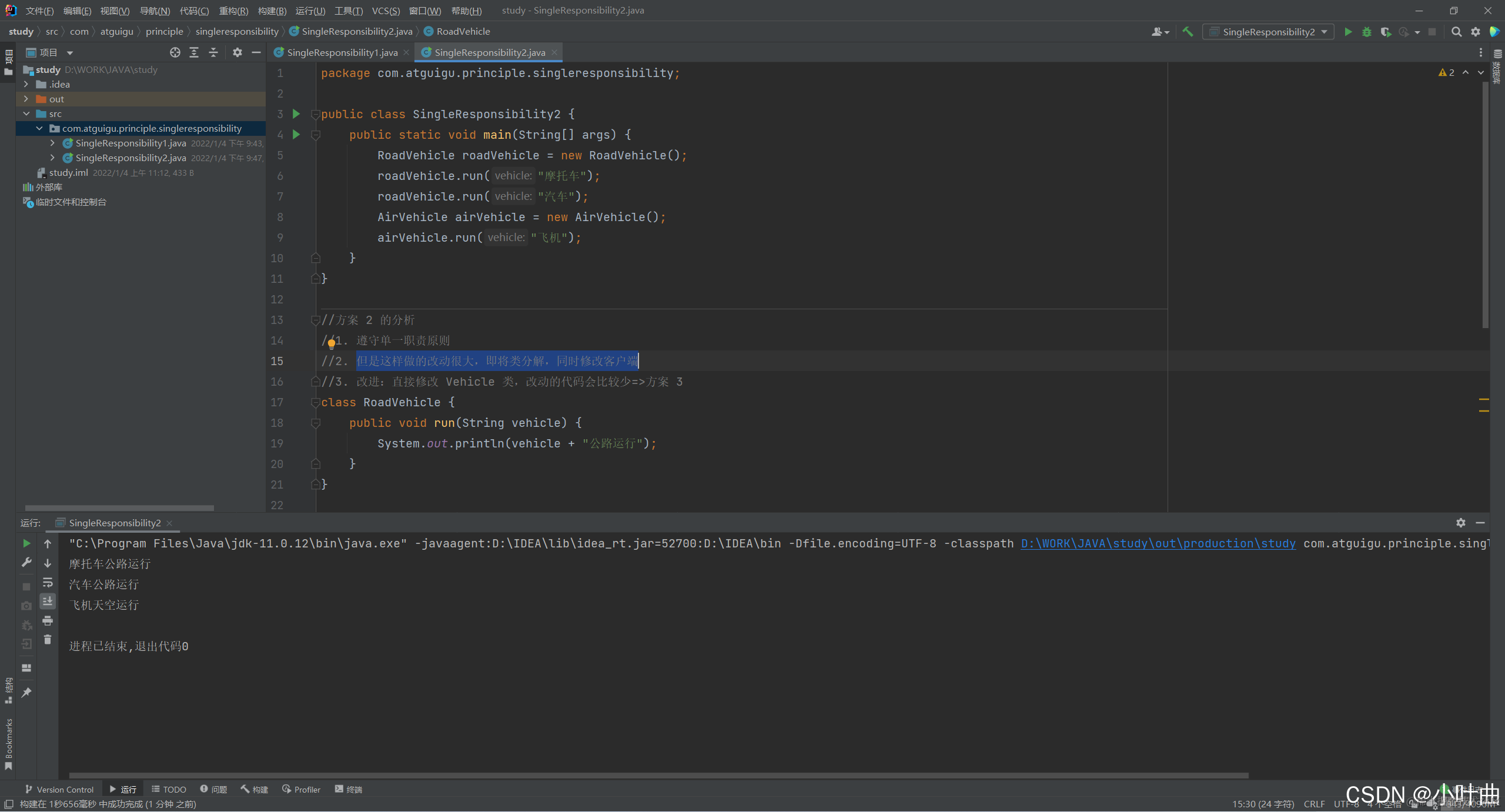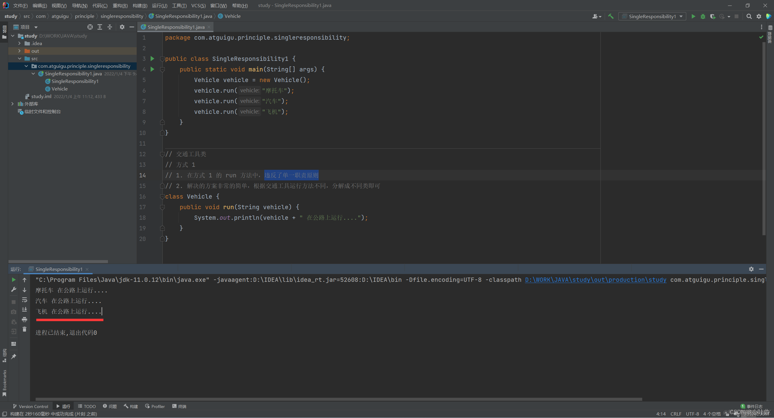 // 1. 在方式 1 的 run 方法中,违反了单一职责原则