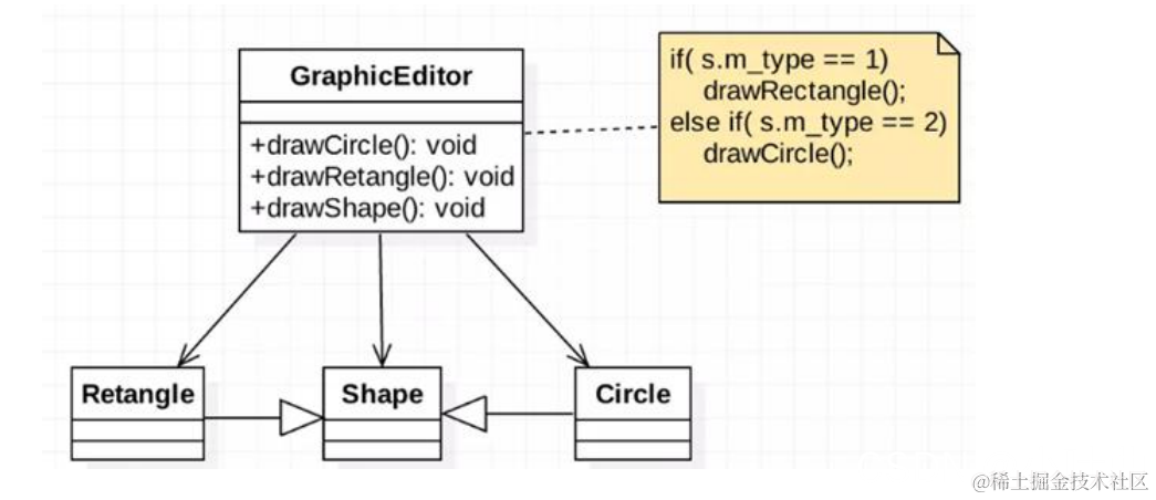 - 比如我们这时要新增加一个图形种类 三角形,我们需要做如下修改,修改的地方较多