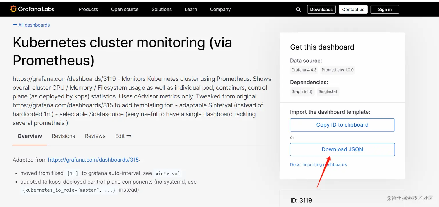 上面截图第一个就是3119模板,当然也可以使用上面截图的其它模板,可以根据需要自己选择。将json下来导入到grafana中。