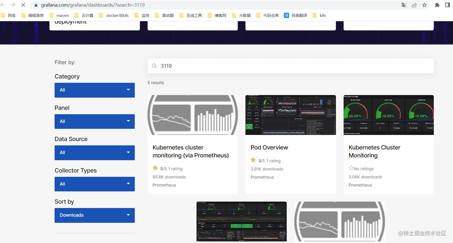导入grafana模板,集群资源监控:3119