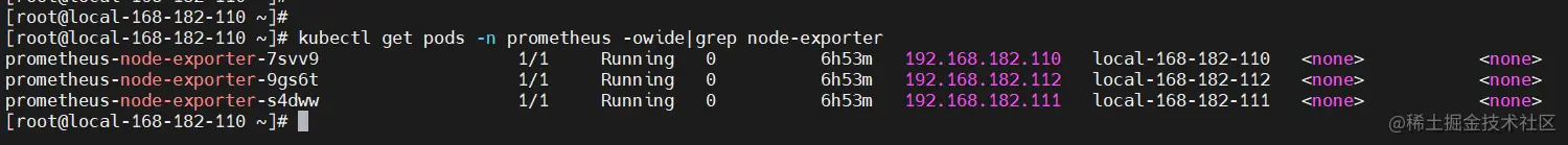kubectl get pods -n prometheus -owide|grep node-exporter