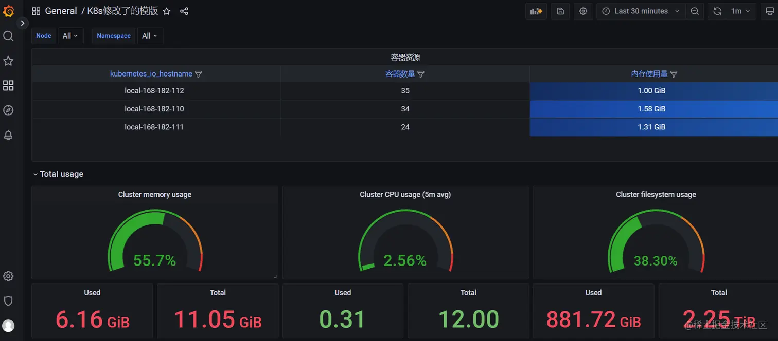 导入grafana模板,集群资源监控:16520