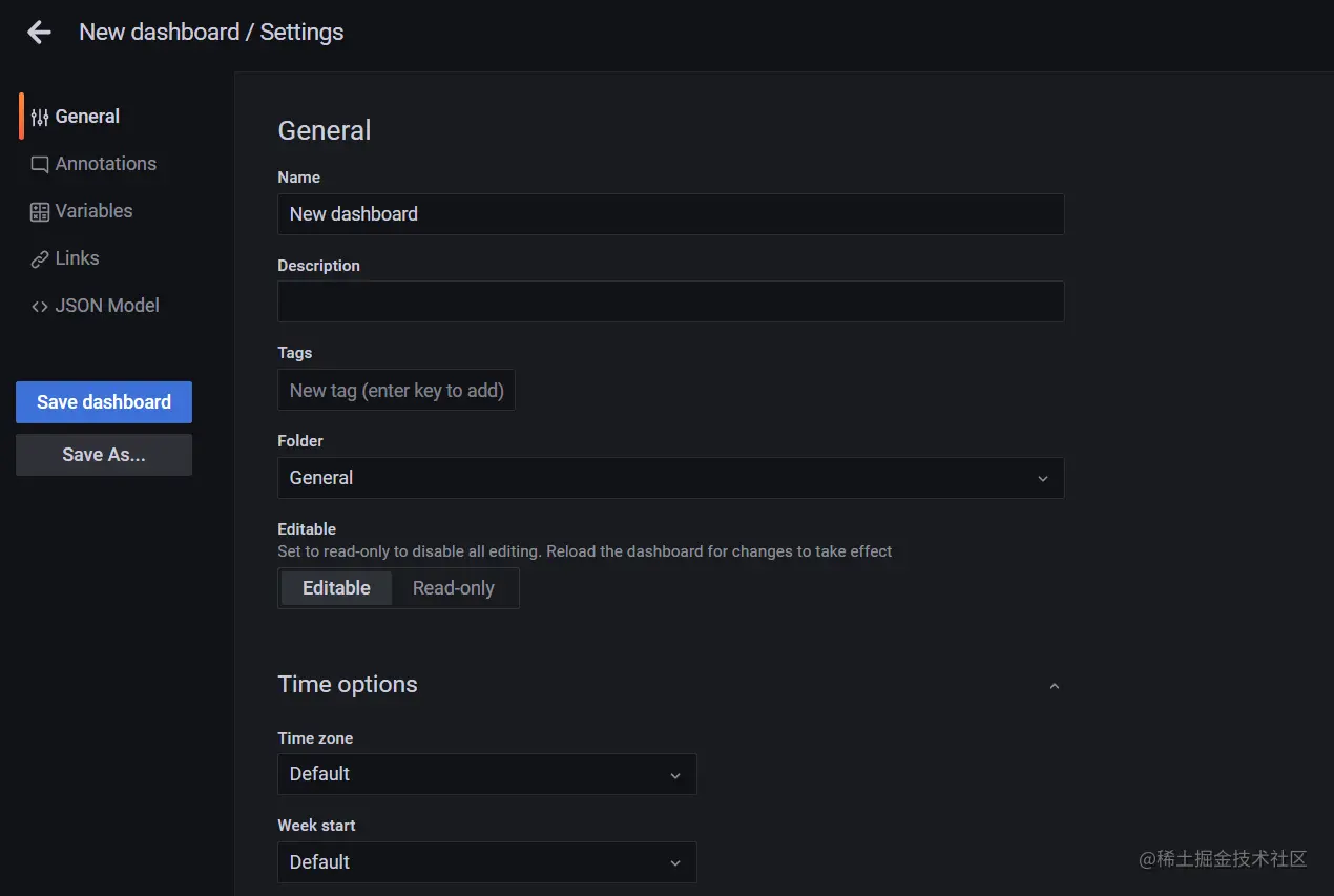 - JSON Model,dashboard的最终代码用json来表达,我们上面导入id后其实加载的就是json代码